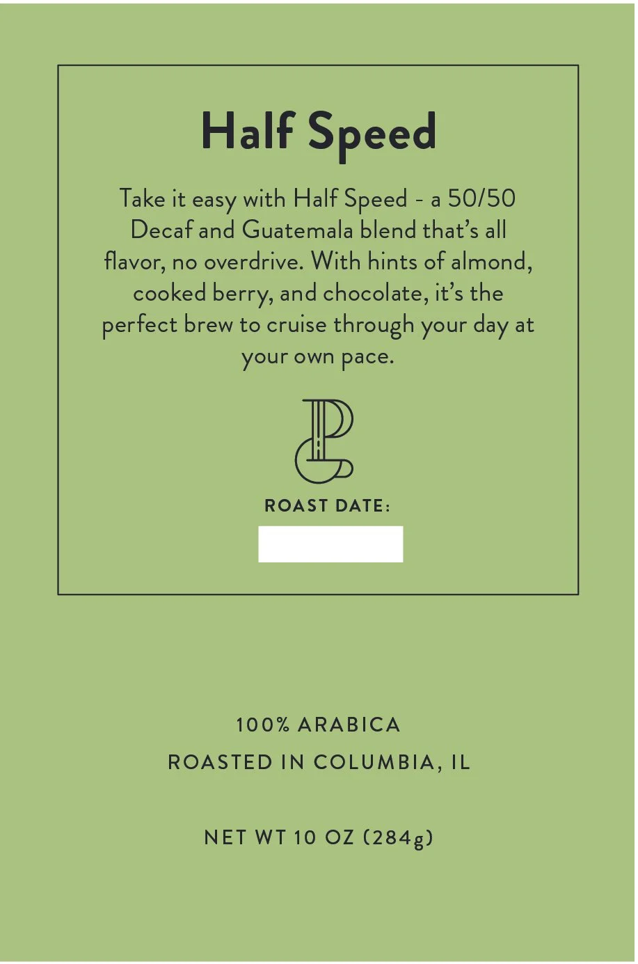 Roasted with care in Columbia, Illinois, Half Speed delivers a flavorful, full-bodied experience with half the buzz, without sacrificing the craft or character.